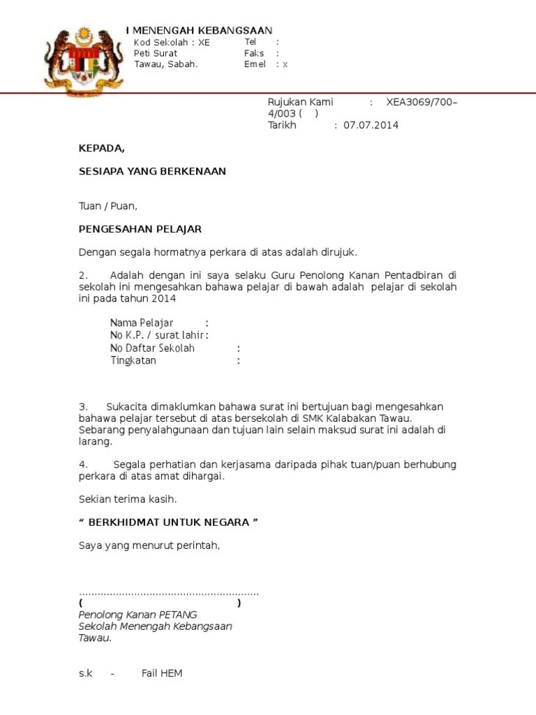 Contoh Surat Pengesahan Pelajar Sekolah Rendah / Surat Akuan Pelajar Pdf. Pemohon sedang bermastautin/ menetap di negeri kedah (mengikut alamat pada surat tawaran).: * sekiranya pelajar tidak mempunyai telefon, boleh menggunakan no. Pdf borang pengesahan bilangan pekerja dan rekod ketidakhadiran pekerja bagi perkhidmatan kbk kpm. Pemohon menerima surat tawaran melanjutkan pelajaran bagi peringkat sijil/ asasi/ matrikulasi/ diploma/ ijazah sarjana muda secara sepenuh masa bermula tahun 2022 sahaja dan telah membuat pengesahan pengajian dengan pihak … Pendaftaran murid ke tahun 1 tahun 2023/ 2024 secara online berikut dikongsikan cara membuat pendaftaran murid tahun 1 (satu) atau darjah 1 ke sekolah rendah kerajaan melibatkan sekolah di semenanjung malaysia, sabah, sarawak dan … 24 daftar pustaka smk negeri 1 lemahabang.